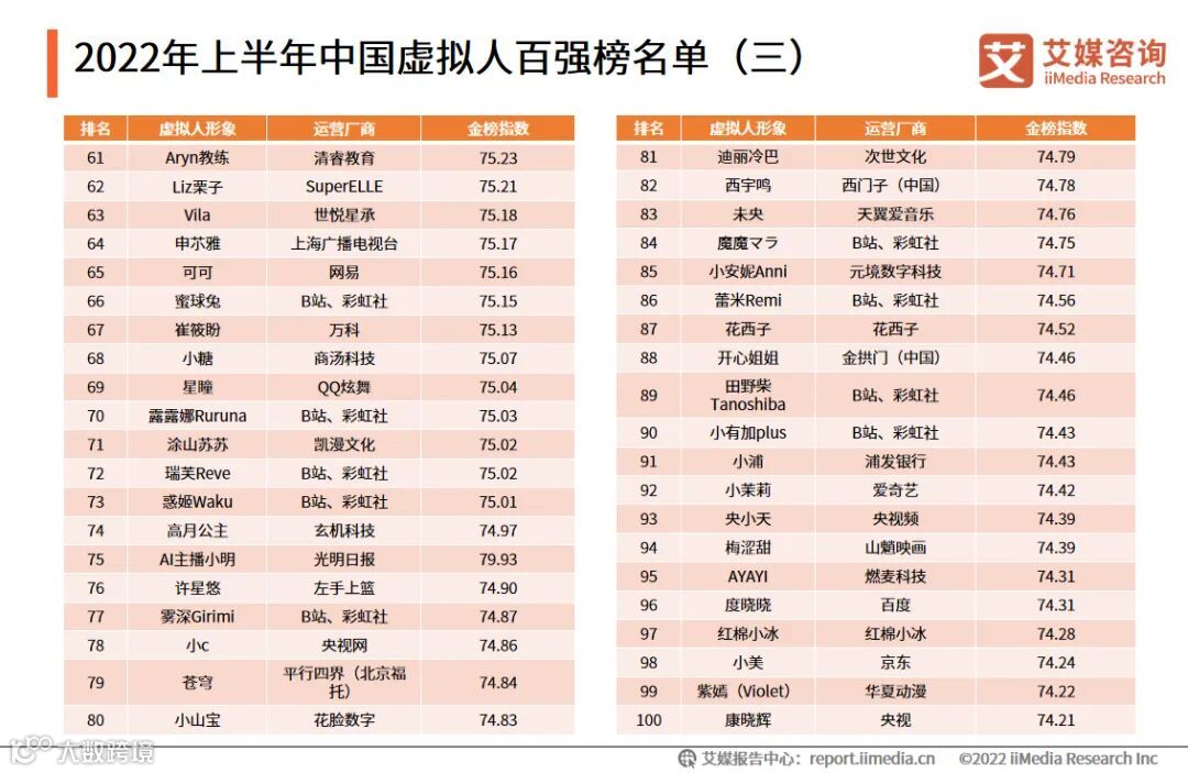 2022年上半年中国虚拟人百强榜名单(三)