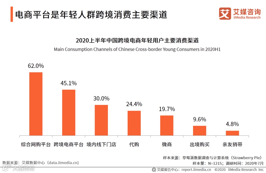图表7:2020上半年中国跨境电商年轻用户主要消费渠道