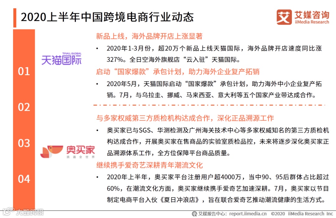 以上内容源自艾媒咨询发布《2020上半年中国跨境电商行业趋势研究报告》,完整版共37页;限于公众号篇幅,故仅摘部分数据和观点,如有兴趣深入,移步报告中心官网下载。