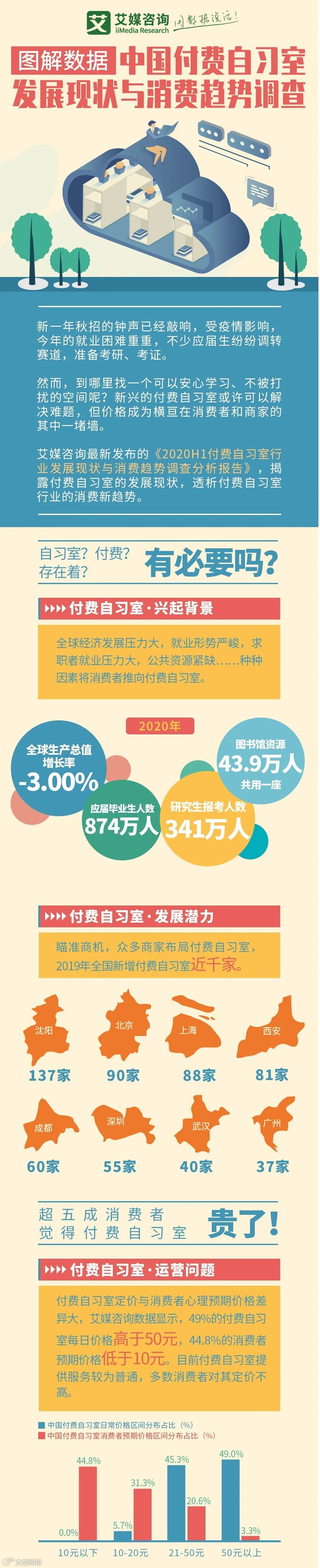 图解数据:去一趟付费自习室要花费多少钱?