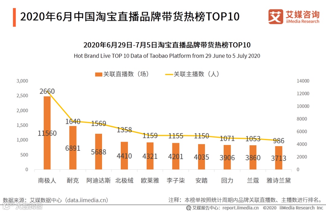 2020年6月中国淘宝直播品牌带货热榜TOP10