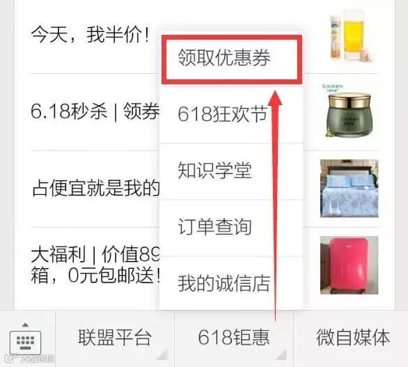 点击中间菜单栏“618优惠券”-“领取优惠券”