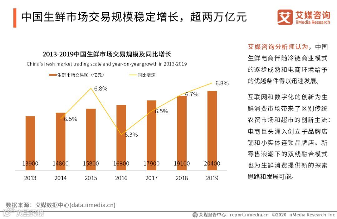 中国生鲜市场交易规模稳定增长,超两万亿元