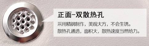 正反面具有强大的散热孔,正面采用精钢制作,不会生锈;背面密布着细小散热孔,有助于电机散热,和辅助皮肤散热。