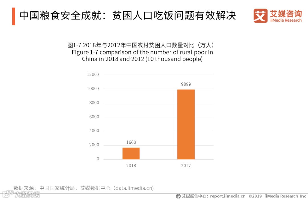 艾媒咨询分析师认为,收入水平的提高,增强了贫困地区的粮食获取能力,贫困人口粮谷类食物摄入量稳定增加。