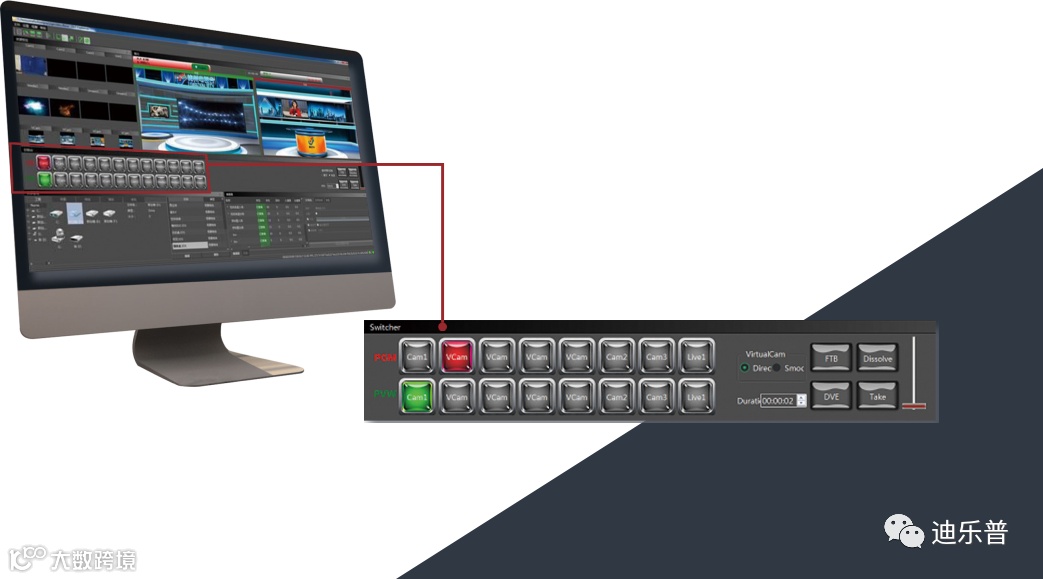 迪乐普 Freelance 虚拟演播室是一款集编辑、播出、特技切换台、调音台、抠像、虚拟跟踪、流媒体推送等功能为一体的高度集成化虚拟演播室系统。这套系统能够把学校、地方电视台、个人工作室带入一个全新的虚拟演播室领域。它可以满足用户从虚拟场景设计制作,到节目拍摄录制实时播出的一整套虚拟演播室节目制作的需求,功能丰富但操作简单,是快捷虚拟节目制作的不二之选。