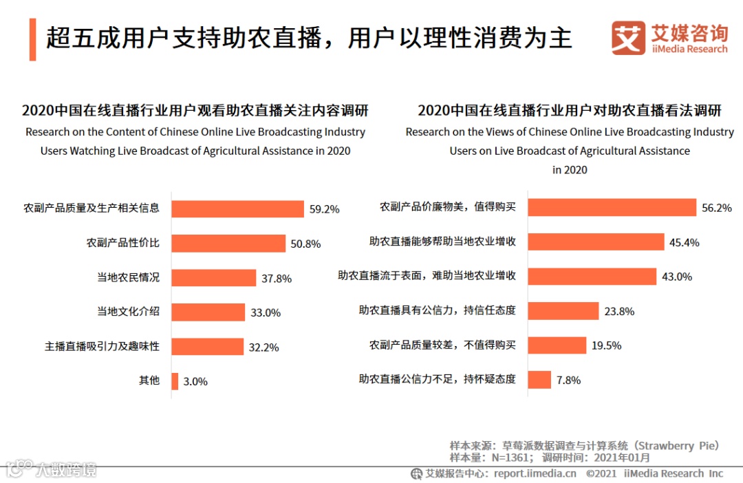 超五成用户支持助农直播,用户以理性消费为主