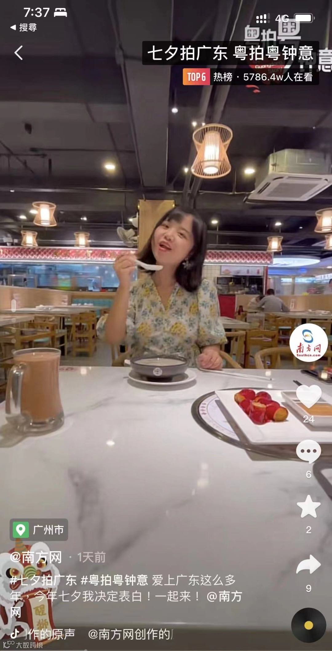 “粤拍粤钟意”在抖音播放量