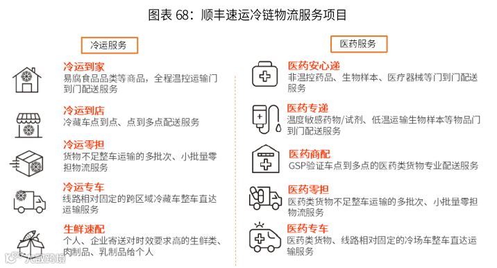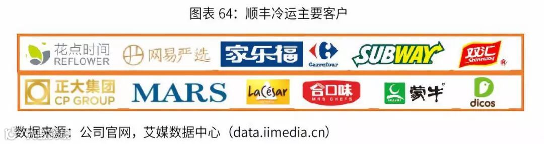 顺丰冷运由顺丰控股于2014年推出,在整合原有物流、电商、门店等资源的基础上,为生鲜食品行业客户提供冷运仓储、冷运干线、冷运宅配、生鲜食品销售、供应链金融等一站式解决方案。其针对的客户为食品企业、生鲜食材市场、餐饮企业、生鲜电商等,主要客户有网易严选、双汇、正大集团、蒙牛、乐凯撒比萨等。