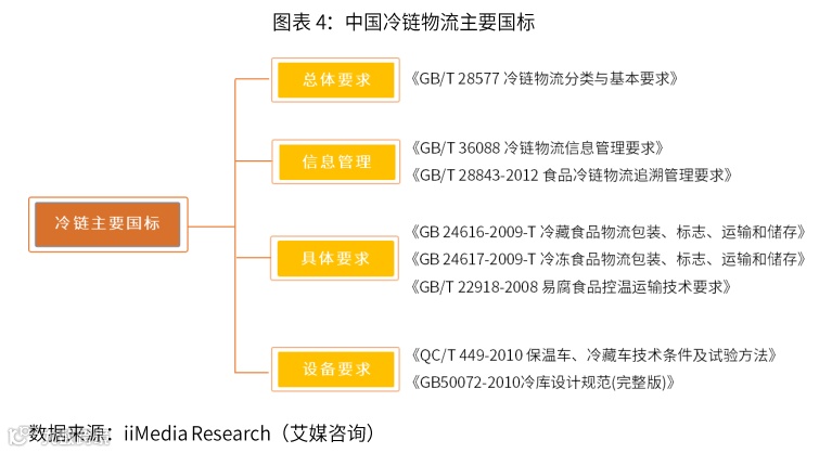 为保障冷链物流的行业规范性,中国设定了8项冷链物流的常用标准,分别从冷链分类、信息管理、追溯管理、冷藏/冷冻食品物流、易腐食品控温、保温车冷藏车、冷库设计等方面做出了相关规定。