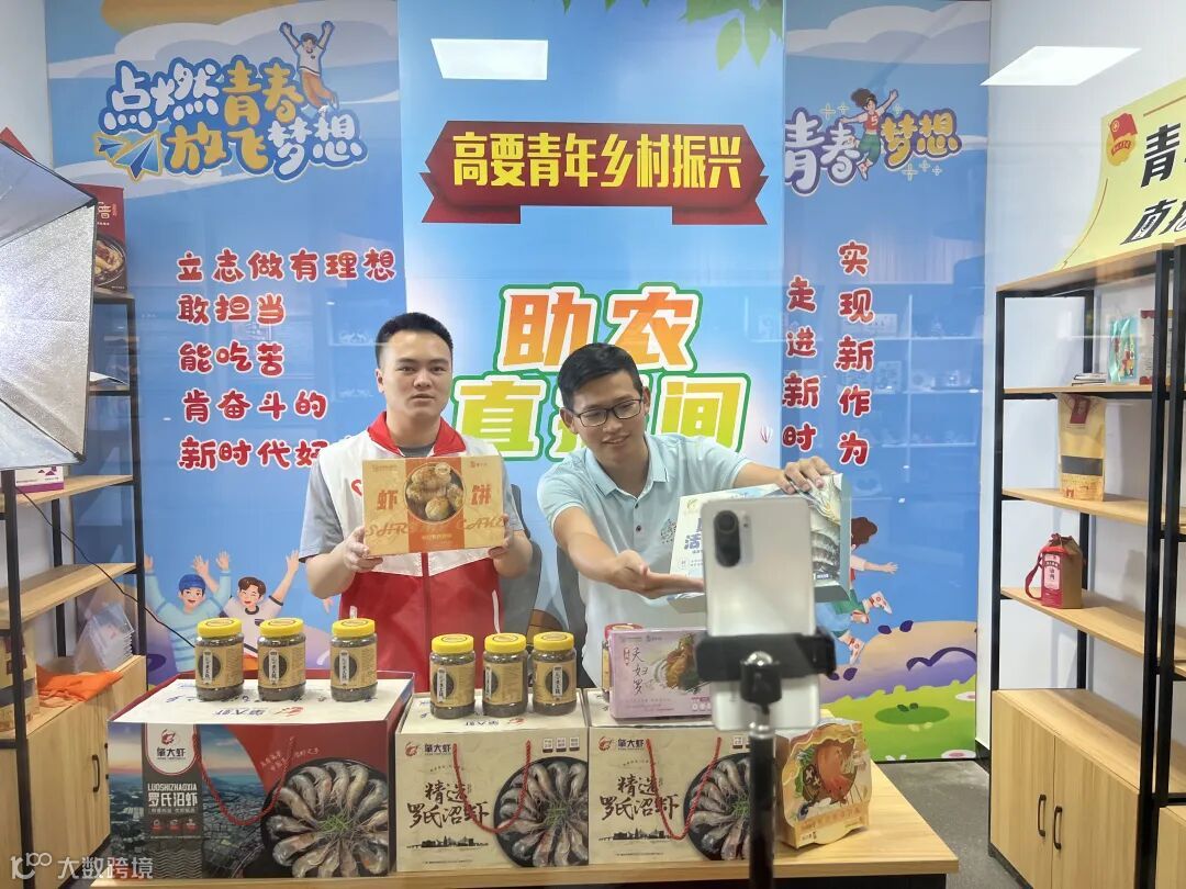 2024年5月,在肇庆高要莲塘镇青年助农直播间,梁志鹏与团队小伙伴为当地农产品带货推广