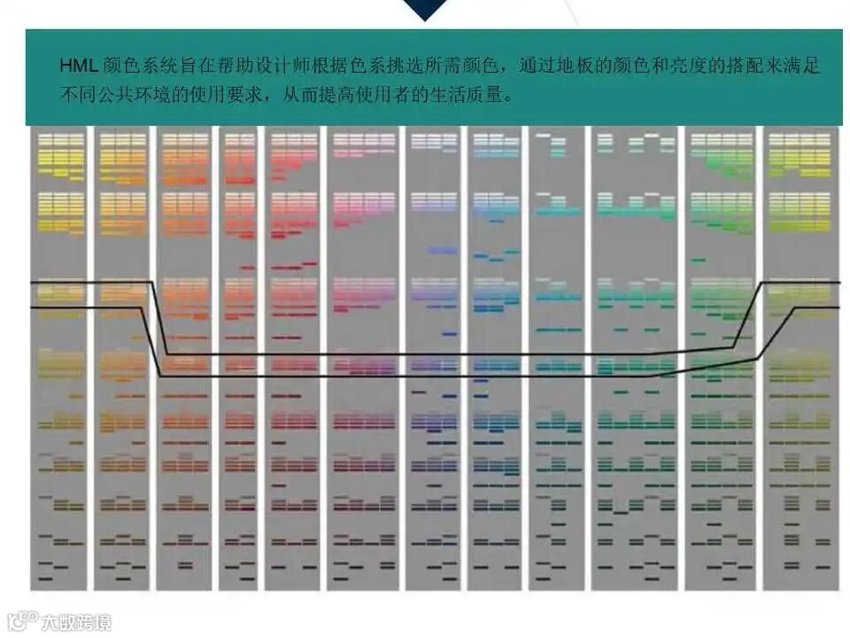 伊代与色彩工作室共同开发的HML颜色系统,旨在帮助设计师根据色系挑选所需颜色。通过地板的颜色和亮度搭配,满足不同公共环境的使用要求,从而提高使用者的生活质量。这一系统体现了伊代对美学与功能完美结合的追求。