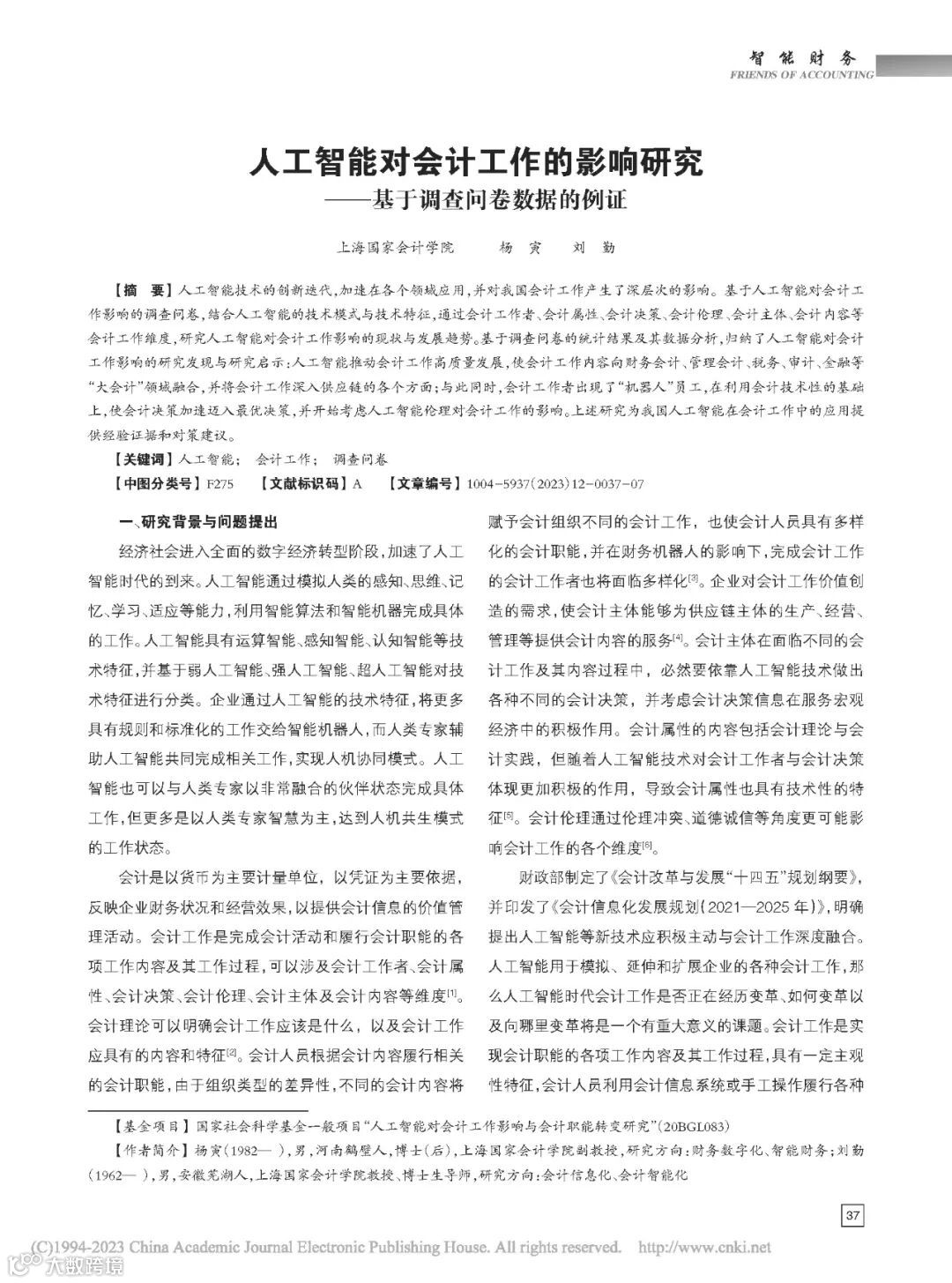 人工智能对会计工作的影响研究———基于调查问卷数据的例证