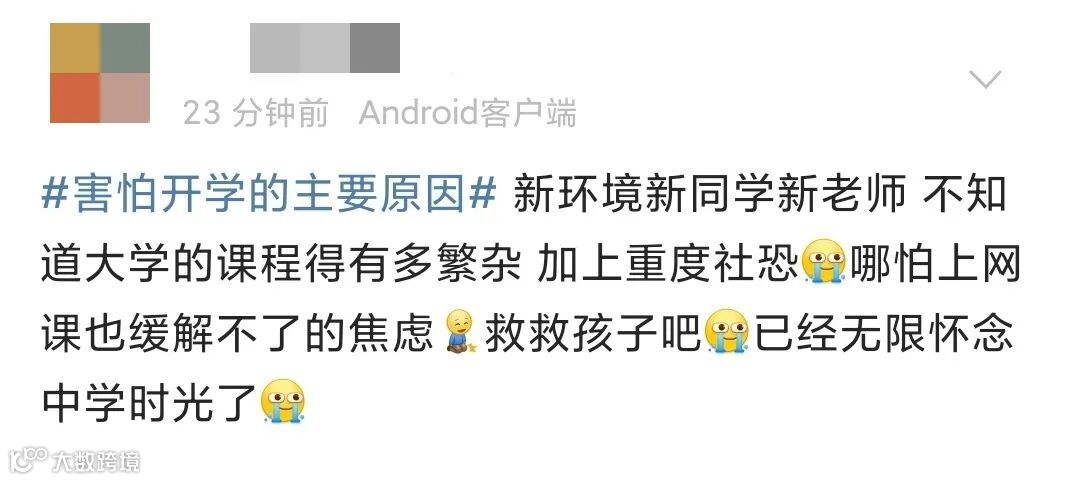 小H:我是大一新生,从来没有离开过家乡,现在要去外地上学了,真的感到很慌…我要去的地方风俗人情和家乡完全不同,很担心会对气候不适应、饮食难以接受(我吃不了辣)、还有方言壁垒…最主要的是舍不得家人和老同学们,现在虽然开学了,但是还是一想到家乡亲人就想哭…