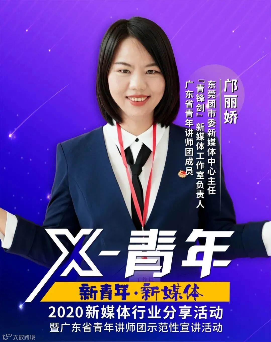 邝丽娇,东莞团市委新媒体中心主任,“青锋剑”新媒体工作室负责人,广东省青年讲师团成员。“青锋剑”新媒体工作室是由东莞团市委与东莞理工学院团委共建成立的新媒体平台。工作室以青年学生为主体,借鉴市场化运行架构,采取导师团授课、执行团管理的模式,用青年的视角、青年的创意,生产制作青年喜欢、青年需要的新媒体文化产品。自2019年5月成立以来,工作室以平均每周上线1.5个作品的“青锋速度”打造原创作品100多个,全网累计阅读量近3000万。