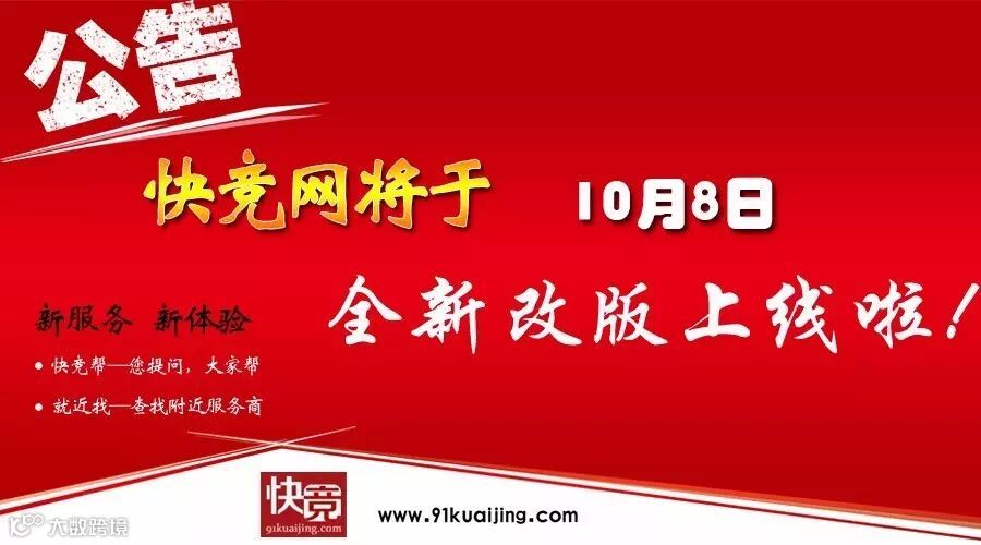 您好,为了给您提供更加优质便捷的服务,快竞网定于2016年10月8日进行系统升级。新增“快众帮”与“就近找”两大服务内容,为您带来全新的便捷体验。