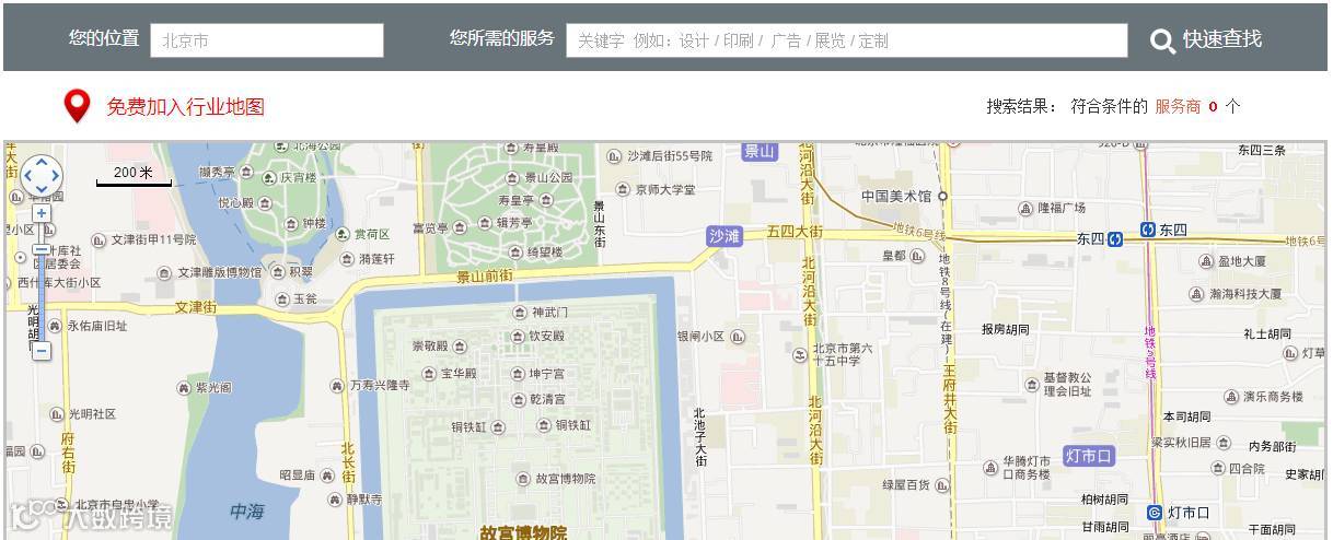 点击进入“就近找”,输入“您的位置”与“您所需的服务”,例如,您的位置:北京西屋国际,您所需的服务:印刷画册。就可查看公司名字与联系方式,解决您的紧急所需。