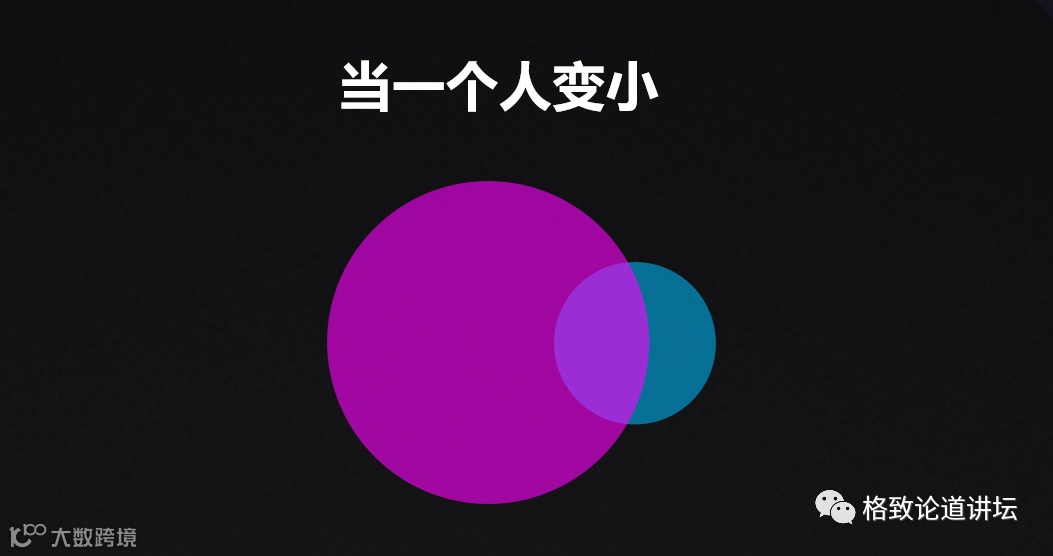 如果其中有一个人的圆很小,也就是他很难适应稍有不同、稍有变化的生活,他很难为了爱情去做出更多的学习和调整。那么我们就可以看到,两个圆之间重叠的面积很快就减小了。