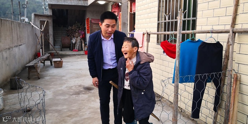 王炜炜在三乐村家访贫困户时与村民交谈