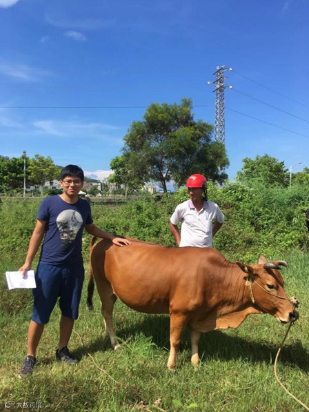 李博业在阳江市阳东区东平镇瓦北村帮助贫困户发展养牛产业