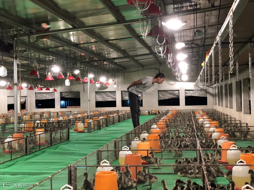 张彬宏查看马冈鹅成长情况