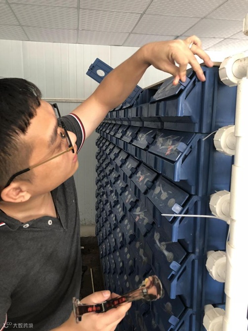 叶振彪进行“信箱养蟹-青蟹水蟹转变肉蟹的试验”