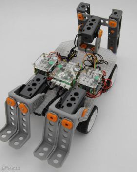 参赛队伍采用统一标准的控制器、驱动器、电机。要求重量2.5KG以内,投影尺寸30*50cm以内。机器人上的武器最多两套(前后各一套),武器可以使用《比赛武器搭建参考》中的武器,也可使用自制的武器,自制的武器尺寸投影面积不能超过25*25cm,必须是塑料件,不能有破坏对方机器人的功能,侧面不允许有防护装置。参考样机如下图: