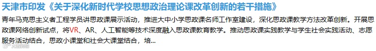 近年来VR技术已被列入教育重点发展规划之内。2020年,教育部办公厅印发《关于开展“网上重走长征路”暨推动“四史”学习教育的工作方案》的通知中提到:线上充分运用AI(人工智能)、VR(虚拟现实)等新技术,搭建网络竞答、虚拟体验等新媒体平台,汇聚线下研学、调研成果。