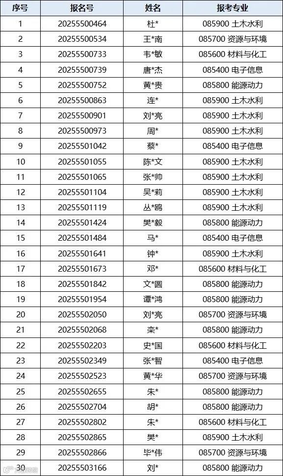 清华大学2025年创新领军工程博士西南地区项目招收公开招考博士入围综合考核的名单已确定,现公布如下: