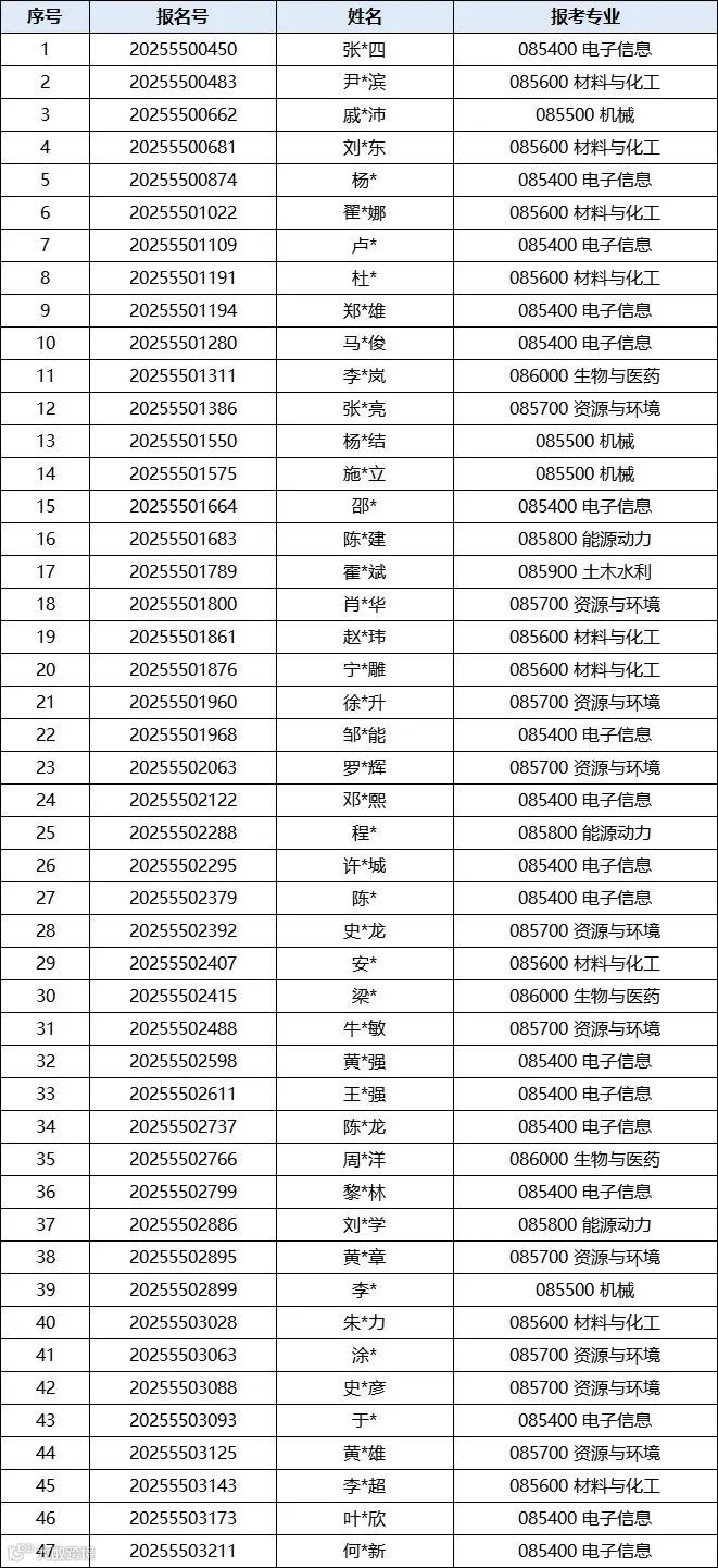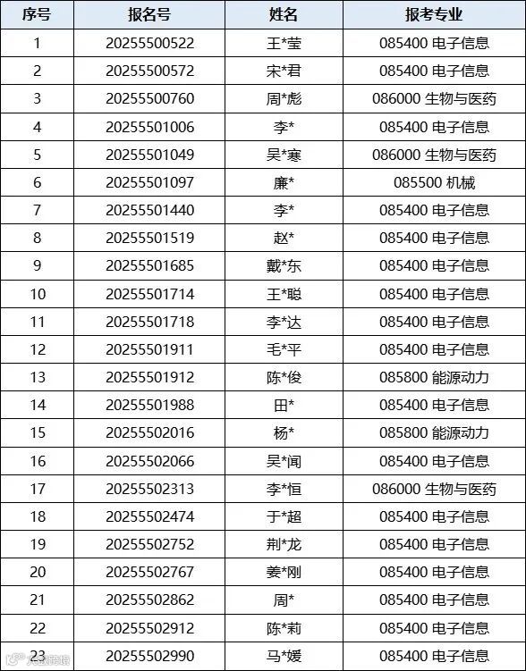 清华大学2025年创新领军工程博士集成电路项目招收公开招考博士入围综合考核的名单已确定,现公布如下: