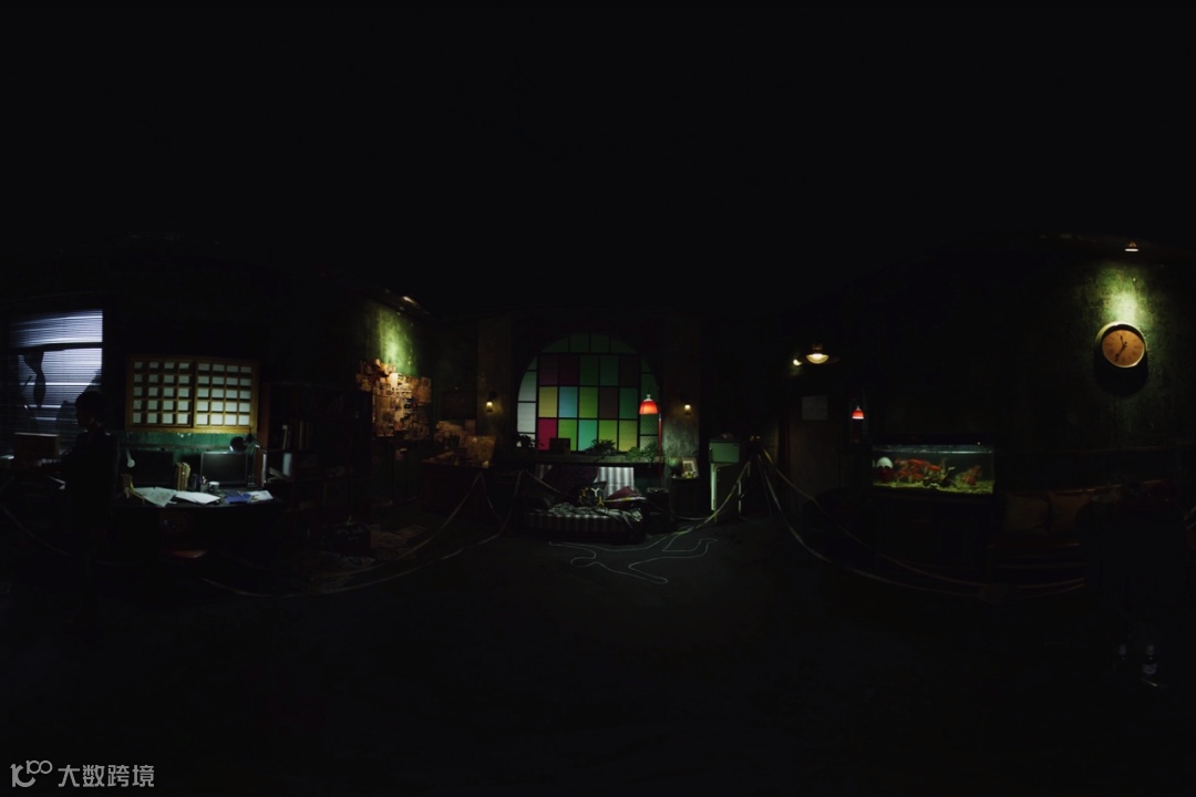 同时为了让观众与剧情进行交互,在电影场景中设计了三个转换媒介窗口,让剧情按照角色扮演的参与形式推进,使得观众不至于偏离叙事逻辑而脱离剧情,观众沉浸能够在影片中,扮演一个侦探智勇破案。另外影片在自然弱光环境下实景拍摄,以高速摄影制作完成,对于突破VR影视技术壁垒,提高VR影视质量具有重要意义。