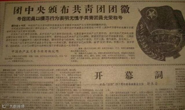 1949年4月,中国新民主主义青年团第一次全国代表大会结束后,团中央根据代表们的要求,做出了制定团旗、团徽、团歌的决定,并且在当年5月15日的《人民日报》上刊登了征求团旗、团徽、团歌的启事。