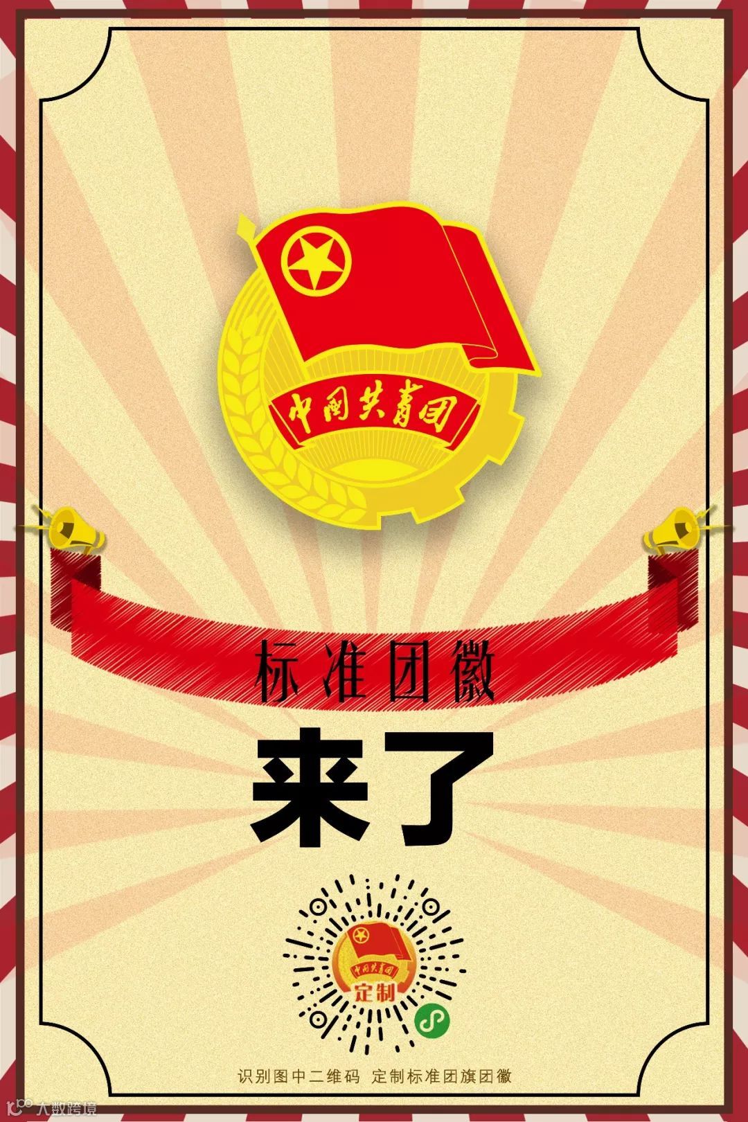 各级团组织可通过下方的海报扫码查询、定制和下载标准团旗、团徽、团歌,也可通过“共青团中央”官方微信左下角“团旗团徽”栏查询、定制和下载标准团旗、团徽、团歌。