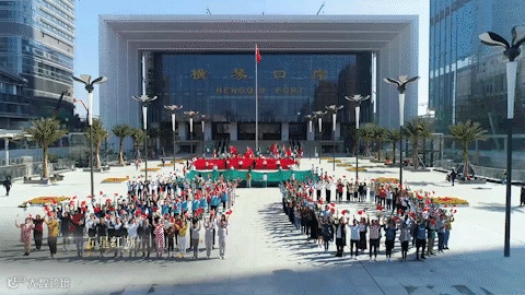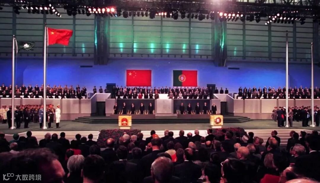 1999年12月20日零时,中华人民共和国国旗和中华人民共和国澳门特别行政区区旗在澳门文化中心花园馆升起 / 新华社 发