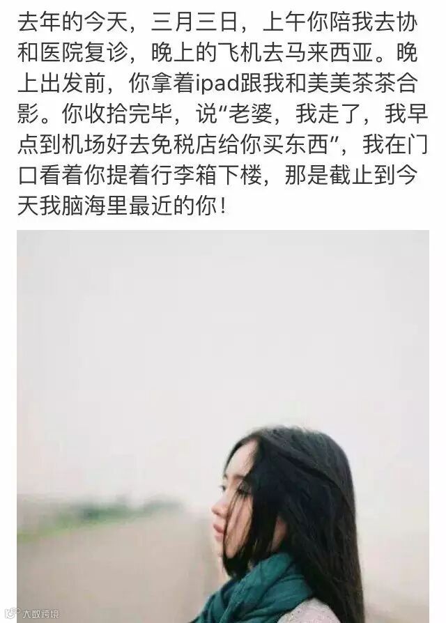 2014年6月2日,@漫步鱼 在微博上传了一张她与丈夫的曾经的照片,并配有文字:去年端午粽子节,五大连池火山口