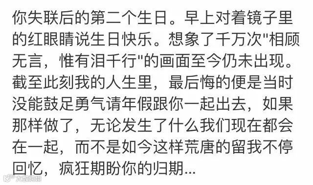 2017年1月末,他失联已近三年。她更新的越来越少,但思念依旧浓烈。她仿佛接受了他再也不回来的事实,她轻轻跟他说:无论你在哪里,都要快乐啊...