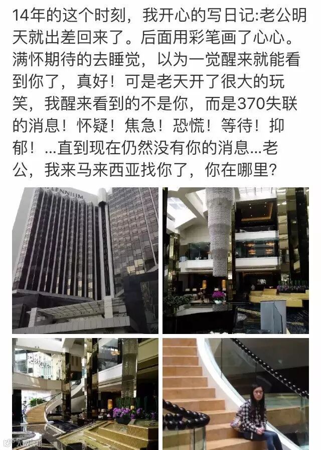 2014年3月11日,事发70小时后,@漫步鱼 登陆社交平台,祈求丈夫的平安。
