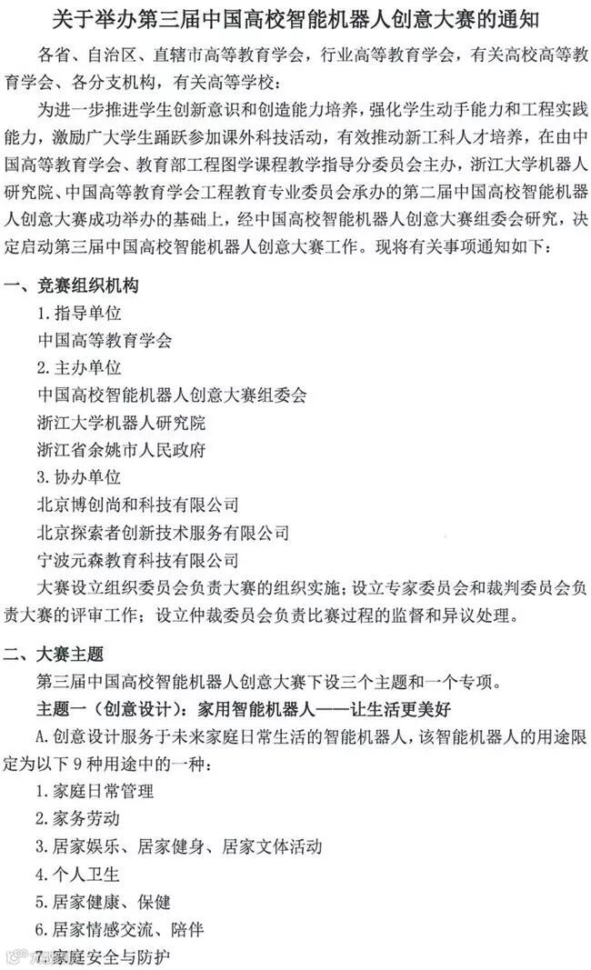 导读:关于举办第三届中国高校智能机器人创意大赛的通知