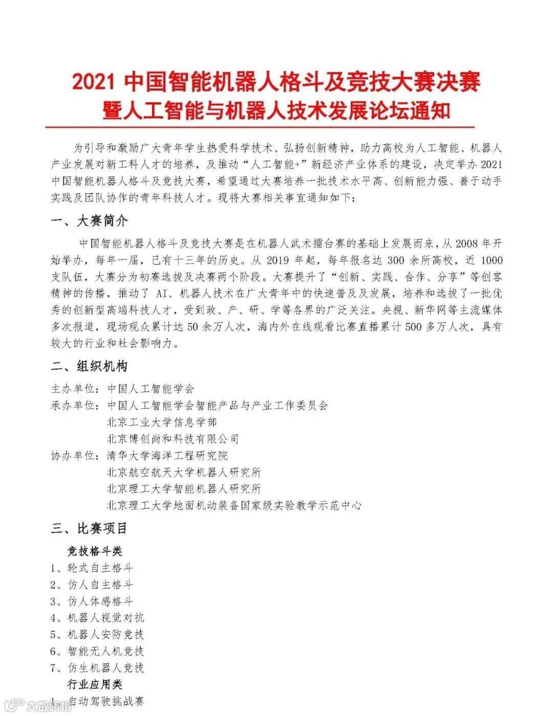 导读:点击下载决赛通知PDF文件:2021中国智能机器人格斗及竞技大赛决赛暨人工智能与机器人技术发展论坛通知