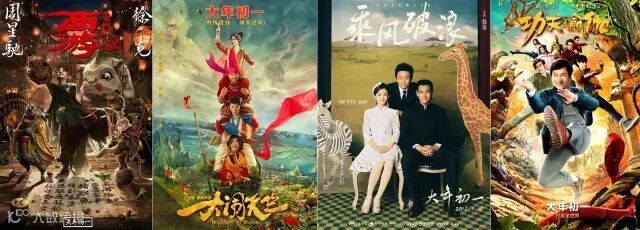 ▲左起:《西游伏妖篇》《大闹天竺》《乘风破浪》《功夫瑜伽》