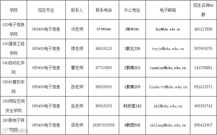 1、杭州电子科技大学研究生院招生办公室:0571-87713515、86919140(兼传真),联系人:黄老师、程老师,