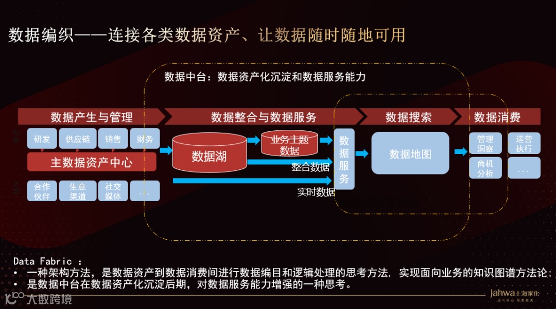 在这一过程中,数据编织技术能够有效助力财务人员能力提升。数据编织(Data Fabric)是一种架构方法,是数据资产到数据消费间进行数据编目和逻辑处理的思考方法,是实现面向业务的知识图谱方法论。数据编织技术属于数据中台在数据资产化沉淀后期对数据服务能力增强的一种思考。数据编织连接各类数据资产、让数据随时随地可用。借助数据编织,无论数据位于何处,企业均可在正确的时间提供正确的数据,从而提升其数据的价值,帮助企业进一步推动业财税融合。