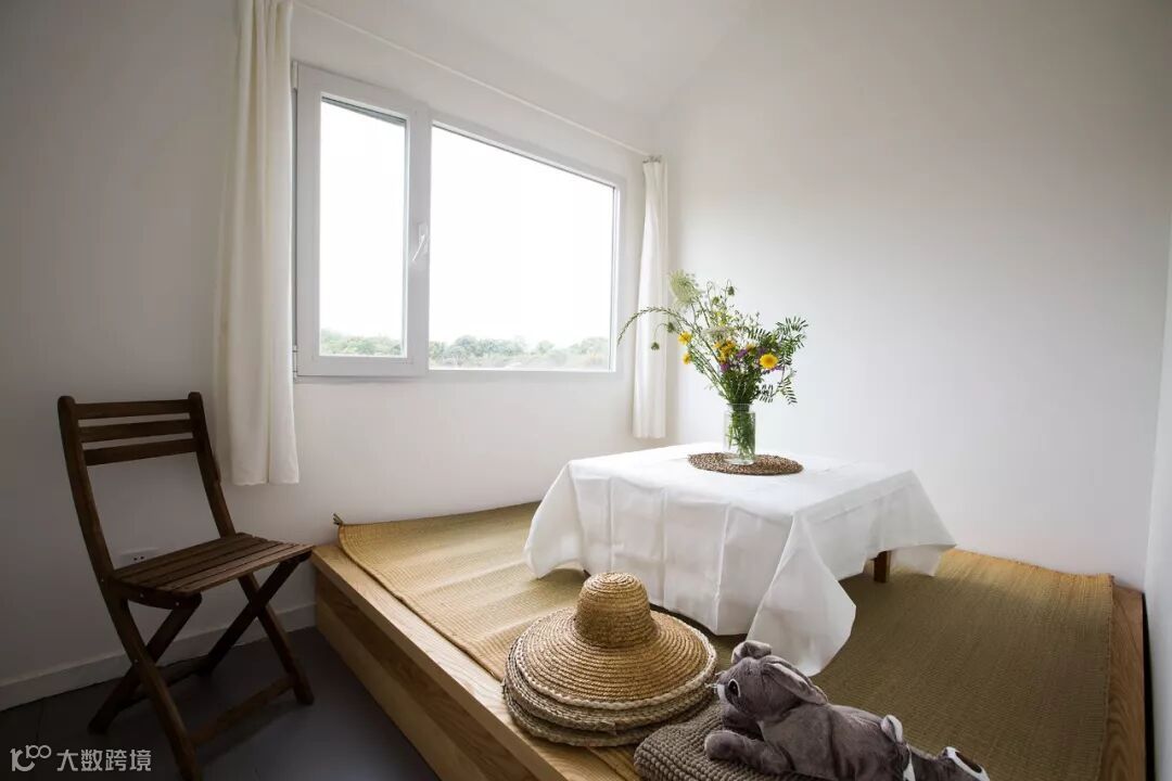 在床边,还设计了一个可以远眺的小飘窗