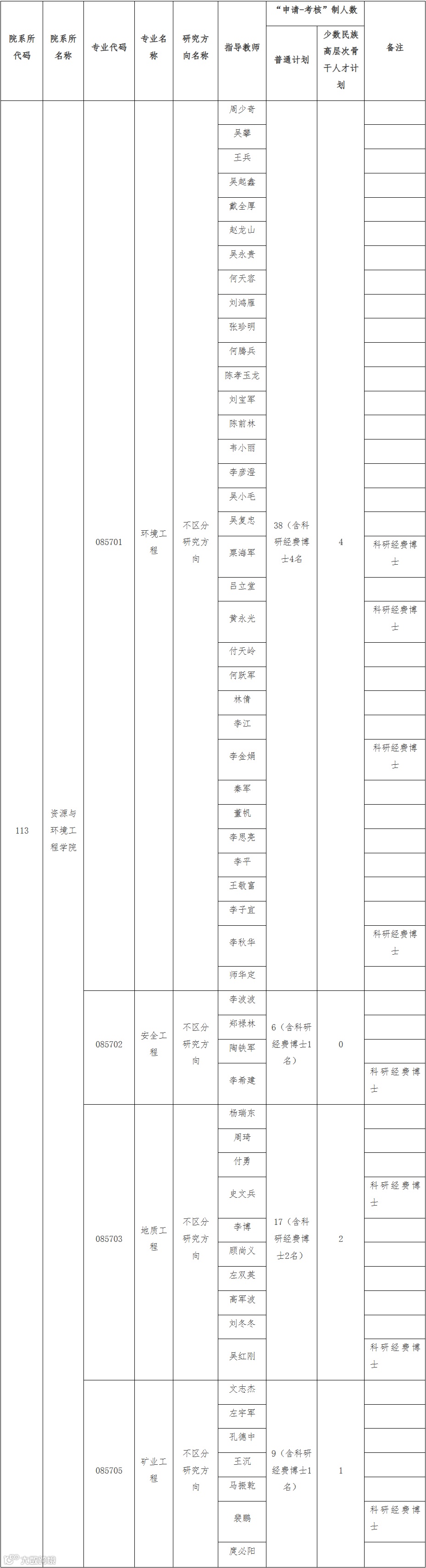 2、资源与环境专业学位博士研究生的招生拟采用“申请-考核”制。拟招生77人,其中普通计划70人(含科研经费博士8名),少数民族高层次骨干人才计划7人。