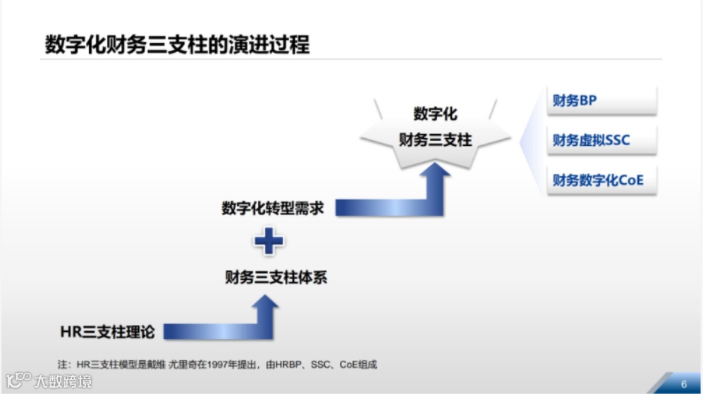 基于这样一些问题,我们结合HR三支柱理论和管理实践,提出了数字化财务三支柱体系。