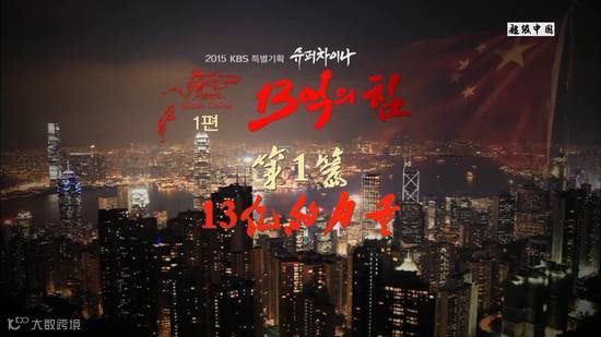 第一部是韩国KBS电视台推出的7集新年特别企划纪录片——《超级中国》,该摄制组为了从全球的视野解读中国,走遍了美国、肯尼亚、越南等20多个国家,通过政府官员、学者、企业家和普通民众的视野,分别从多个方面介绍了中国发展现状,观察中国为世界带来的变化。