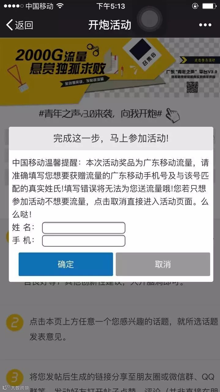 5、进入活动页面后,填写姓名、电话。