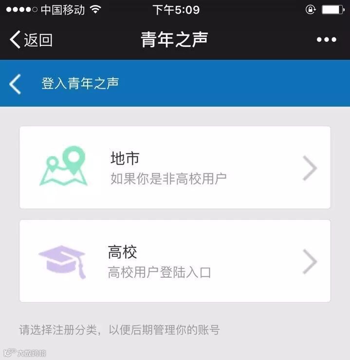 2、选择注册分类(仅面向未注册用户)