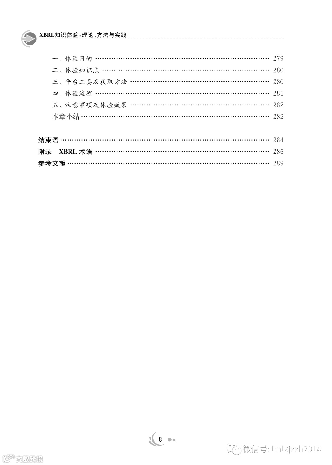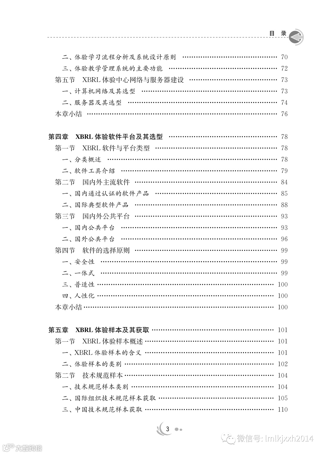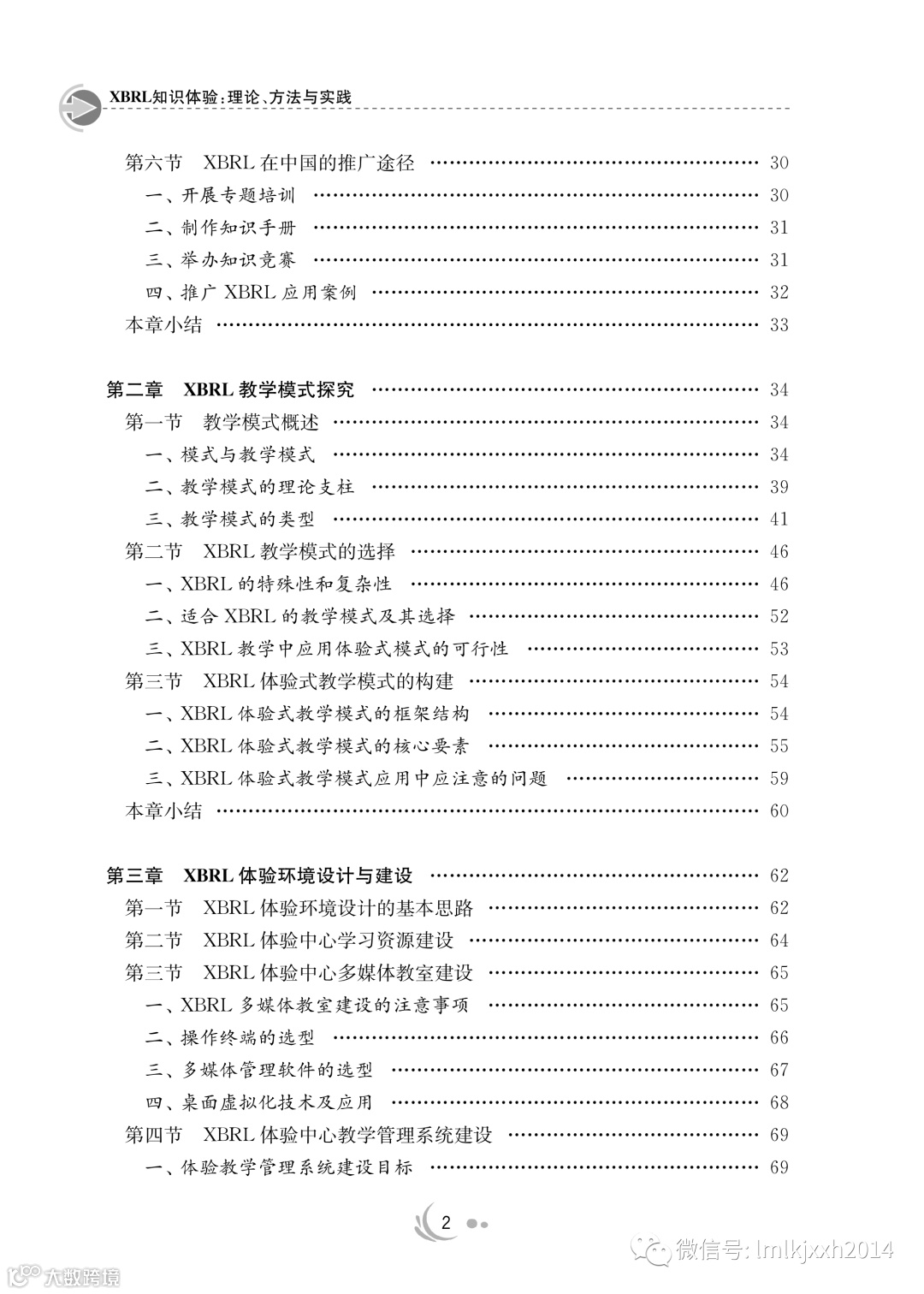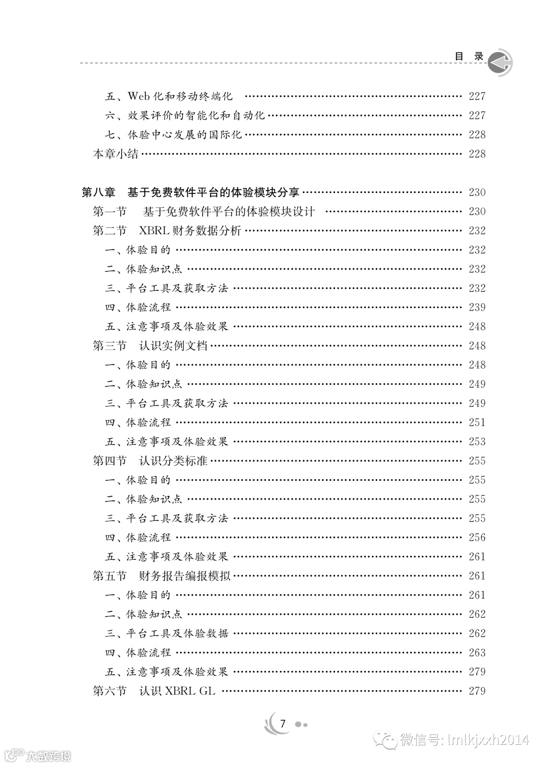 给出了XBRL中国地区组织体验中心的具体实践及其体验效果,即从体验中心的目标定位与发展历程出发,详细阐述了体验环境的设计与搭建、体验平台的选择与整合、体验样本的筛选与运用,特别是具体介绍了体验模块、体验内容、体验流程和课程类型等方面的设计思路,该部分是全书的核心内容。