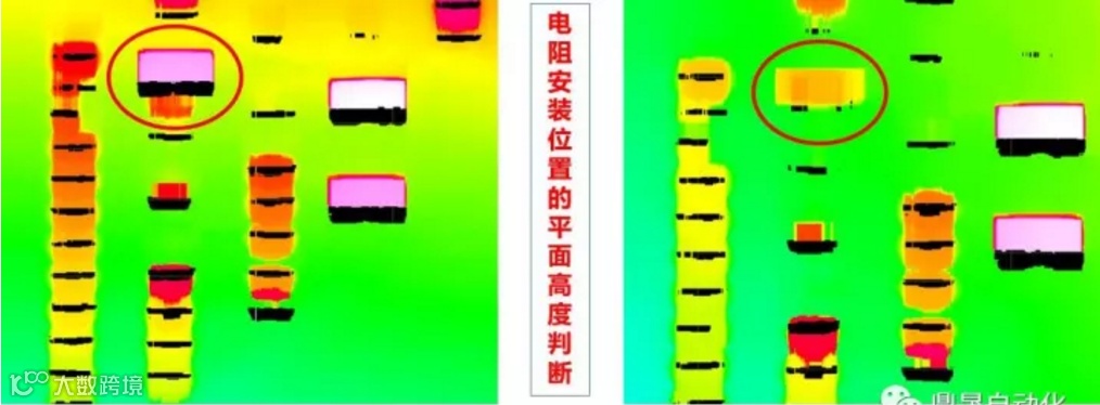 图左:电阻正常安装状态,图右:电阻安装撞歪状态